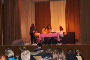 C’est dans une ambiance joyeuse et conviviale que pendant 5 jours, les jeunes actrices: Emy, Angie, Maureen et Noémie accompagnées de Benoît Devillers, comédien à la Cie La Femme et l’Homme Debout, ont imaginé, créé, et mis en scène des saynètes construites à partir de leur quotidien, de leurs histoires, de leurs expériences.
