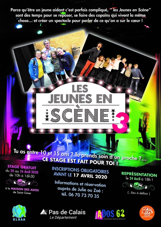 Pour la 3ème année, ELSAA met en place un stage de théâtre/répit de 5 jours pour les Jeunes Aidants. Il aura lieu du lundi 20 au vendredi 24 avril inclus.