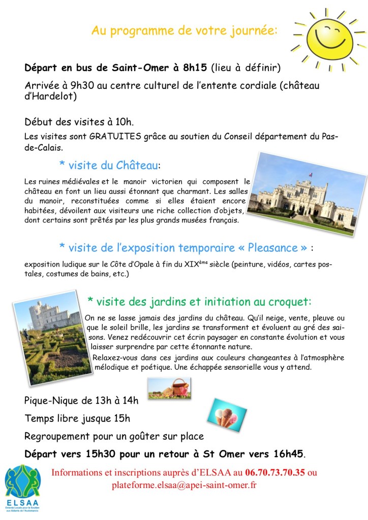 Information, inscription et réservation au 06.70.73.70.35 ou par mail plateforme.elsaa@apei-saint-omer.fr