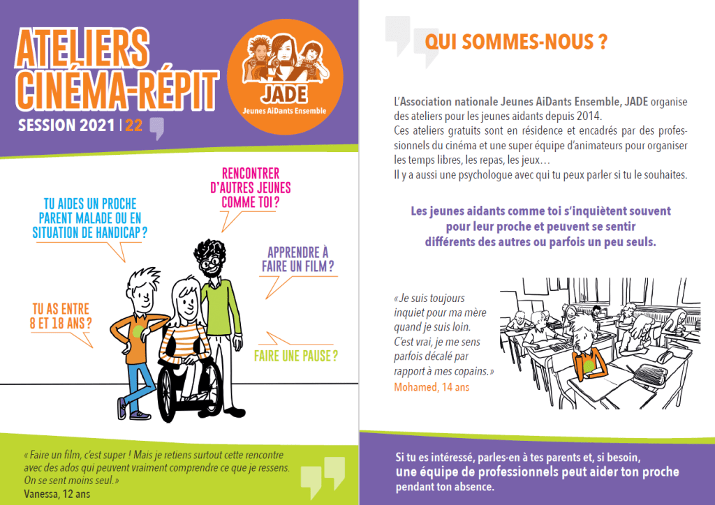 Pour la 8ème année consécutive, l’association nationale Jeunes AiDants Ensemble: JADE, organise des séjours pour TOUS les jeunes aidants entre 8 et 18 ans.