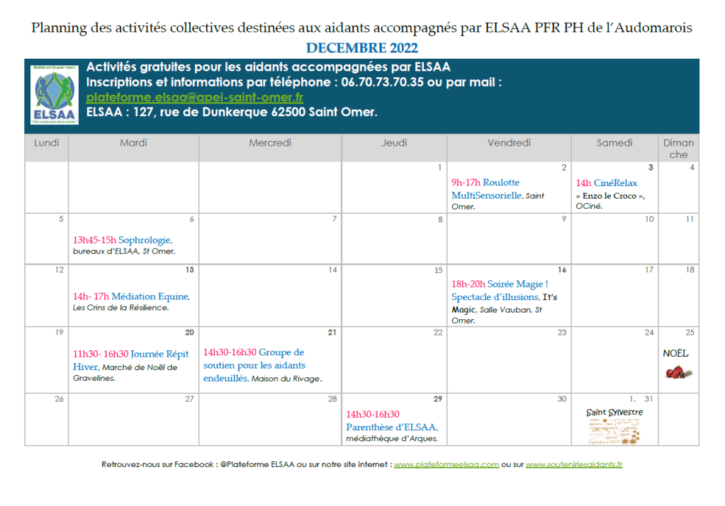 Voici notre planning d’activités pour le mois de décembre 2022, il est tout beau, tout chaud 🙂