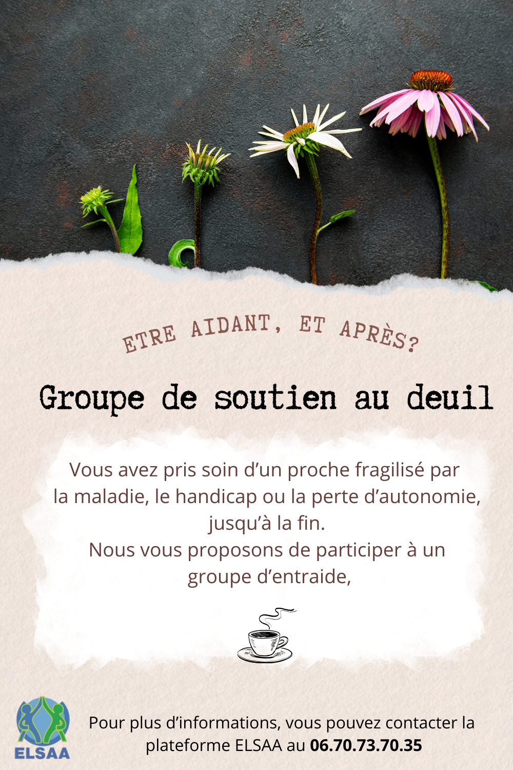 C’est pourquoi ELSAA a souhaité proposer aux personnes endeuillées un groupe d’entraide pour briser l’isolement, pour se regrouper et ainsi, se sentir moins seul et compris face au deuil.